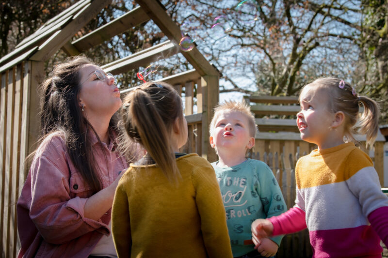 Iedere dag spelen we buiten in onze uitdagende, veilige & grote tuinen!