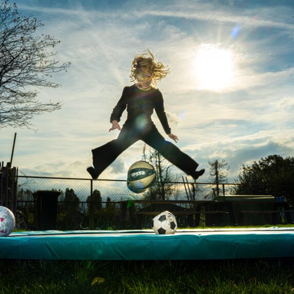 We houden van buiten spelen, maar soms regent het wel héél erg hard! Dan hebben we een enorme speelhal waar we zelfs kunnen voetballen…